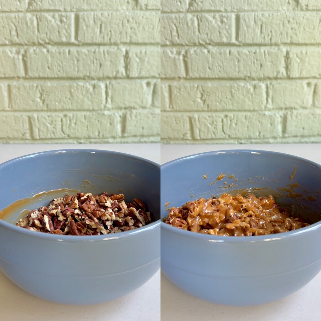 - WORKING QUICKLY: The caramel and pecan mixture begins to set quickly, so I recommend spooning it mounds immediately! If you find the caramel is thickening and cooling too quickly, feel free to return it to the microwave for 30 seconds or so to warm it back up.