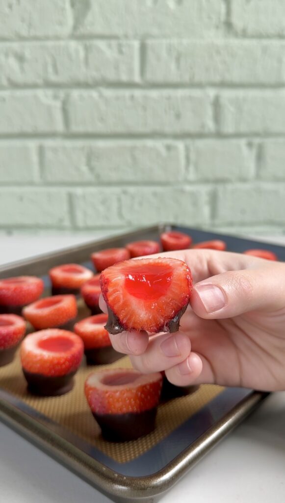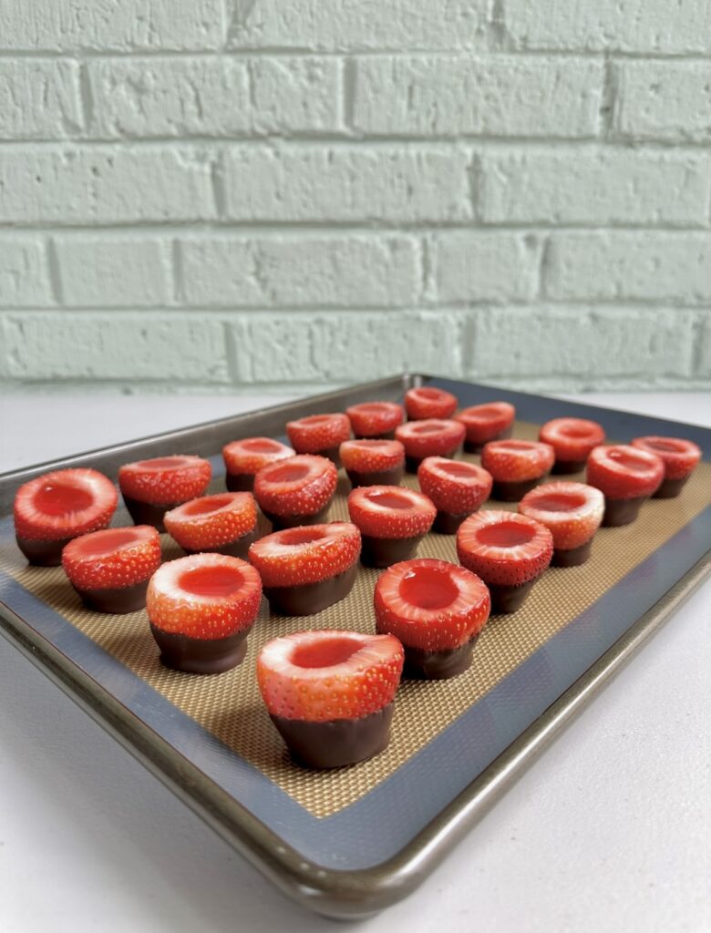 - PREPARED BAKING SHEET: Be sure to let the chocolate dipped strawberry jello shots set on a sheet of parchment paper or a silicone mat to prevent sticking. This ensures the chilled chocolate will easily release from the baking sheet when you’re ready to enjoy.