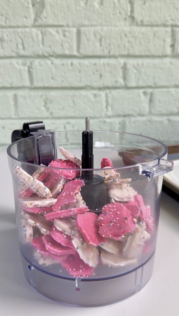 • While the chocolate sets, add the circus animal cookies into the bowl of your food processor and pulse them into fine crumbs.