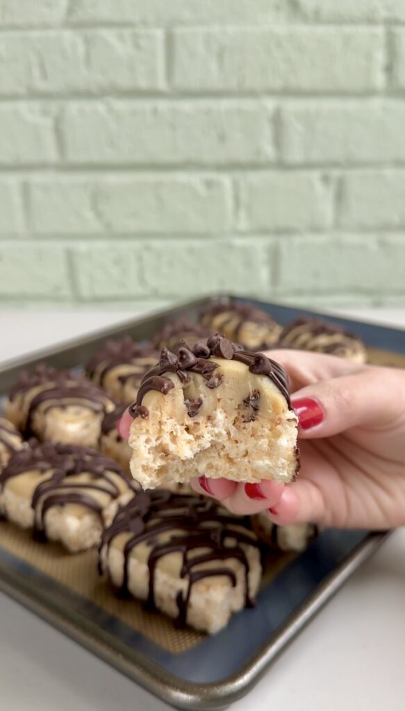 Together, they create a dessert that’s chewy, creamy, and incredibly satisfying. If you’re someone who sneaks spoonfuls of cookie dough before the cookies even make it to the oven, this treat is definitely for you. Once you try them, you may never look at a plain rice krispie treat the same way again!
