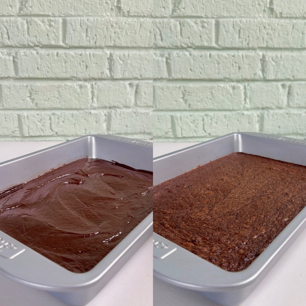 - Prepare your brownies according to the directions on the box, then bake in a greased 9×13 baking pan. Once baked, let the brownies cool completely.