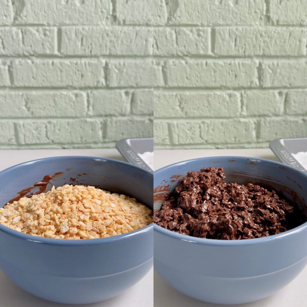 What you end up with is the ultimate brownies and Rice Krispies treat mashup!
