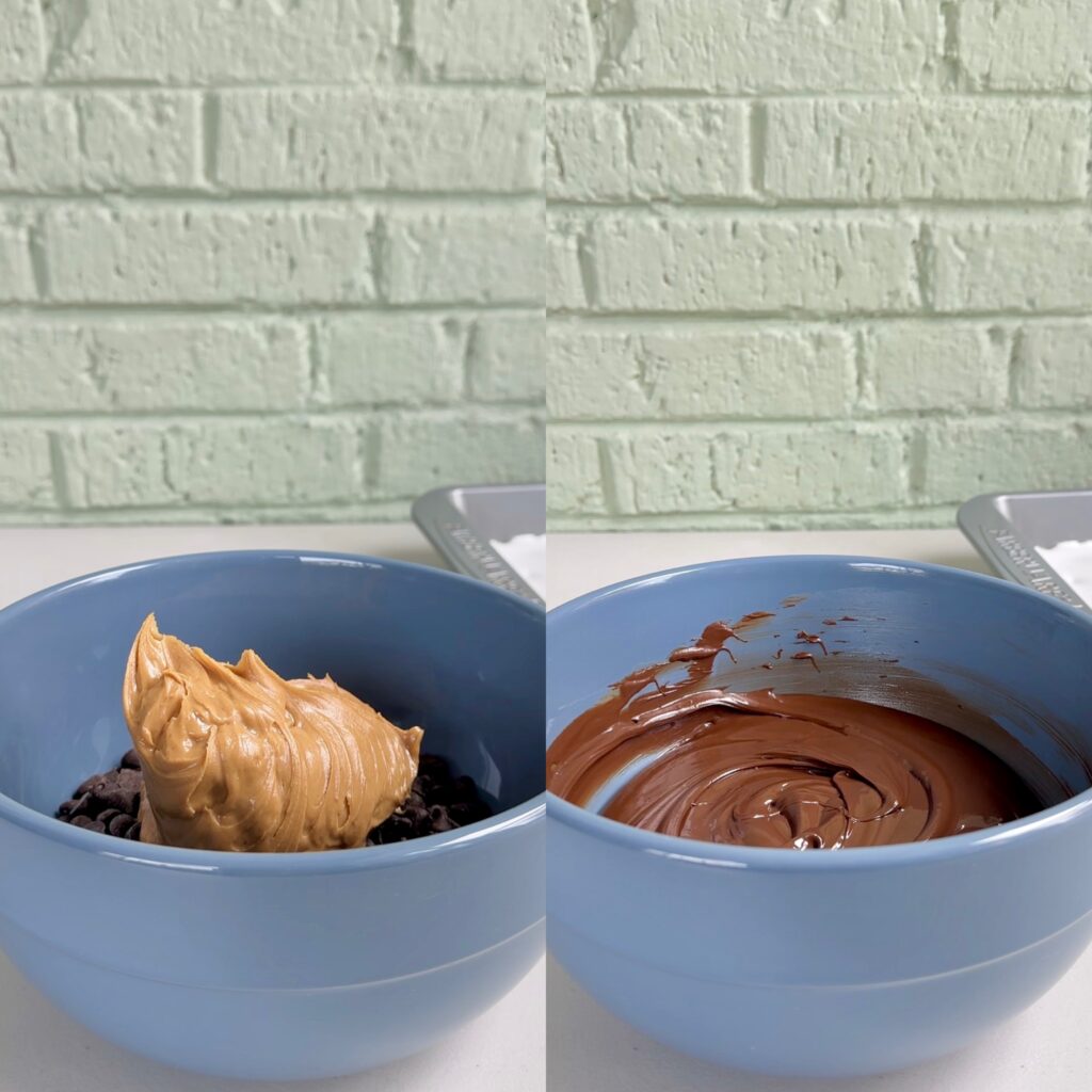 - CHOCOLATE: I recommend heating the chocolate and peanut butter in 30 second intervals because the chocolate can burn and seize easily. It’s hard to reverse clumpy chocolate, so I recommend watching it closely! You can also use a double boiler here instead of the microwave.
