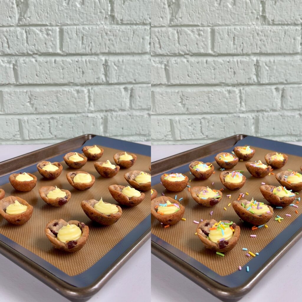 • PIPING BAG: Transferring the icing into a piping bag helps control how much filling you’re piping into to the cookie cups and in turn, keeps them nice and neat. You can also use a Ziploc bag here.
