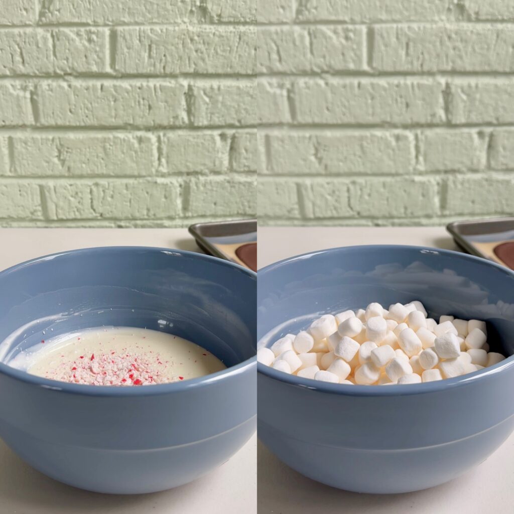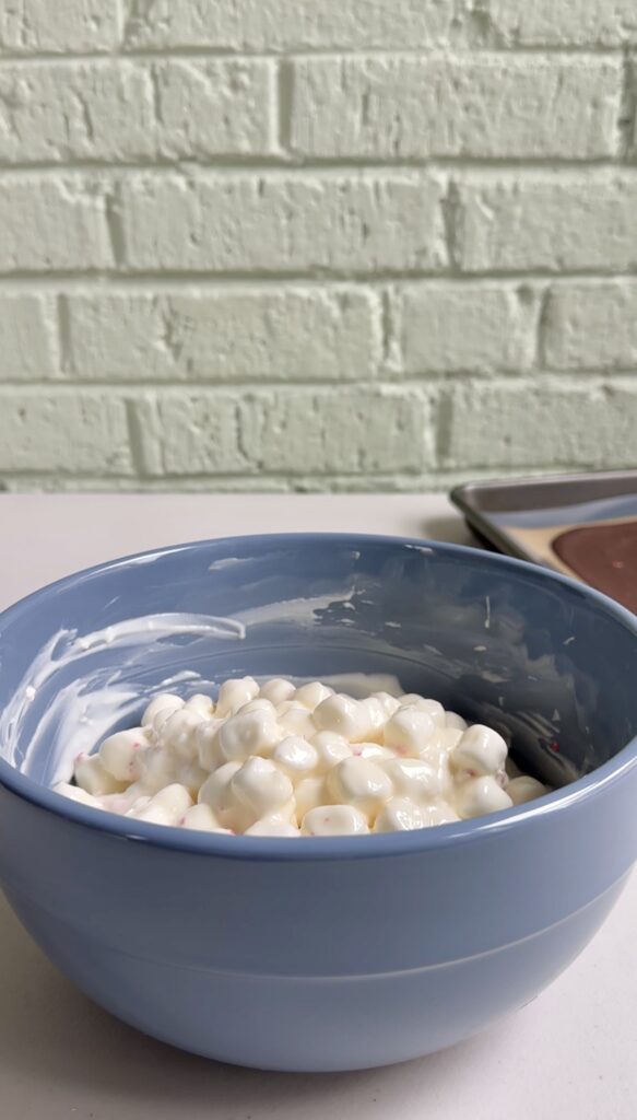 - Add in 2 tbsp of the crushed peppermint candy and the mini marshmallows, then stir to combine.