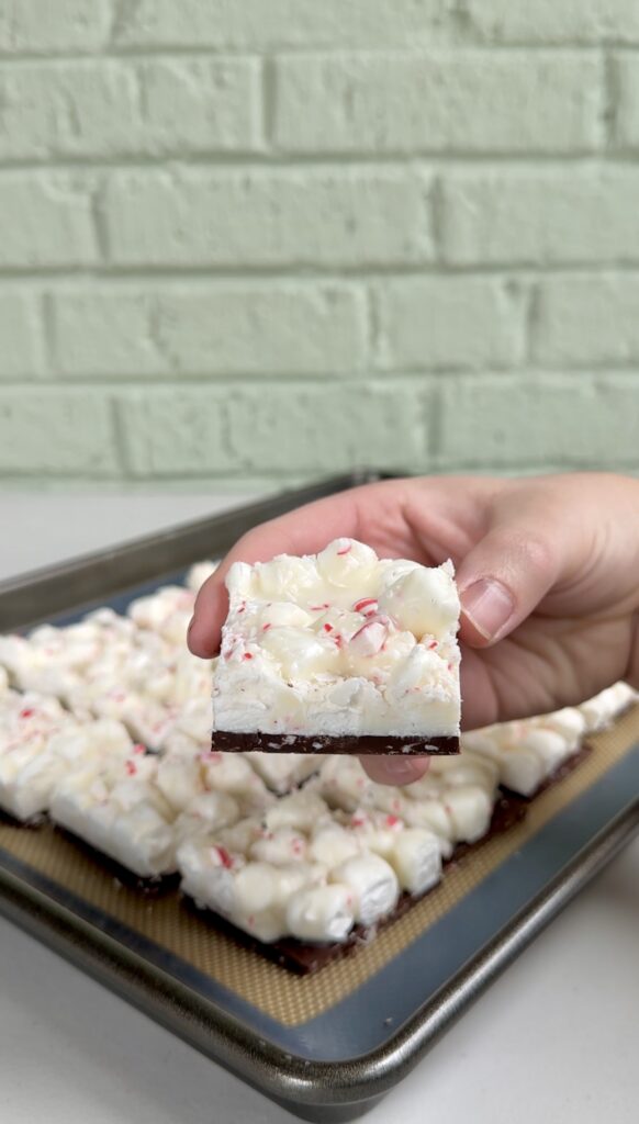 It’s like a cross between peppermint bark and a Rocky Road candy bar—comforting, nostalgic, and exciting all at once!