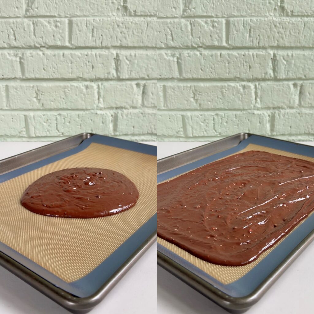 - LINE YOUR PAN: It’s important to line your baking sheet with parchment paper, wax paper, or a silicone baking mat to prevent any sticking. This is important because it makes breaking up the hardened bark so much easier later on.