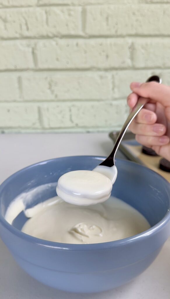 - COATING: I find a fork is a great tool to use to coat the Oreos in the melted chocolate, as the chocolate can drip off through the prongs of a fork. After you coat each Oreo, tap the fork against the bowl so the excess chocolate drips off. You’ll also want to scrape all the excess chocolate off the bottom of your cookies so that it won’t create a pool or “foot” at the bottom.