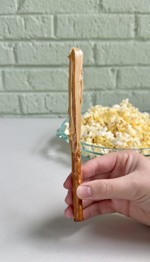 Popcorn Pretzel Rods are the perfect mashup of sweet, salty, creamy, and crunchy. The salty snap of the pretzel rod hits first, followed by a rich layer of creamy peanut butter that makes every bite feel indulgent.