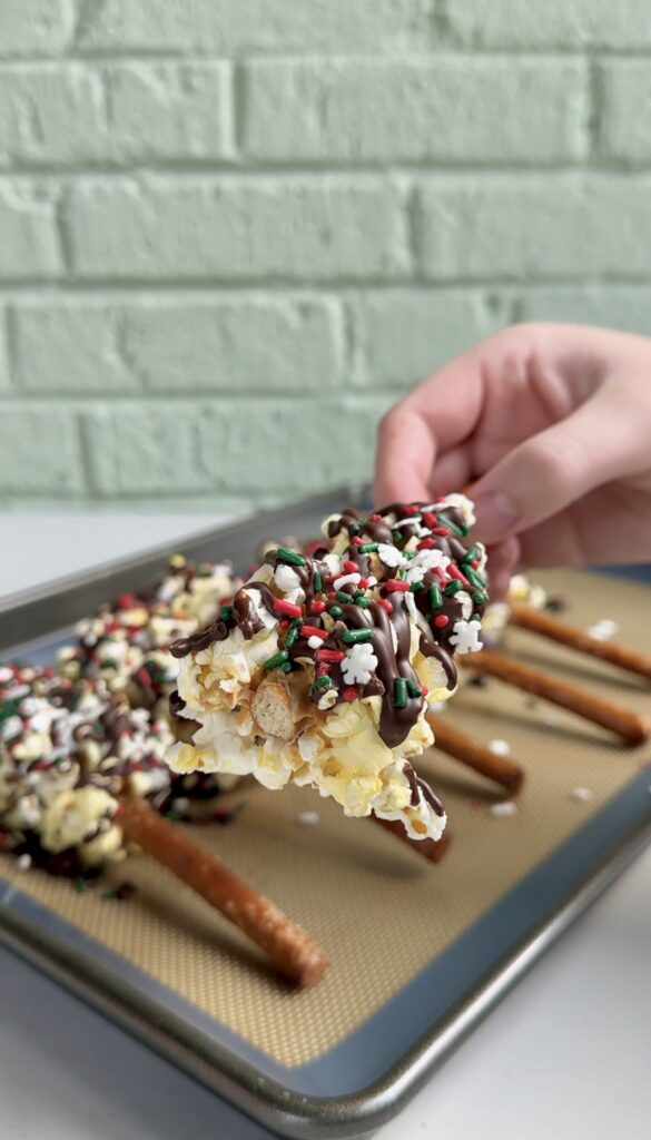 The popcorn adds a light, airy crunch that keeps them from being too heavy, while the melted chocolate drizzle brings a silky sweetness that ties everything together. Add sprinkles on top and you get a playful pop of sugar and texture! They taste like a gourmet candy-shop treat, but with the cozy nostalgia of movie-night popcorn!
