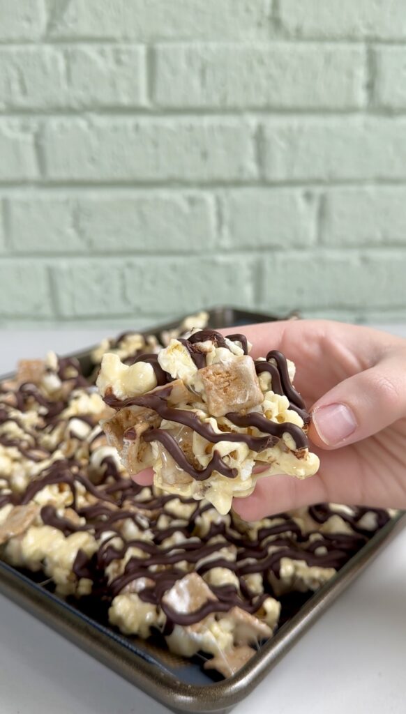 There’s something about the flavor combination that just works. Chocolate, graham, and marshmallow have always been a perfect trio, and popcorn adds a light, buttery base that ties everything together.