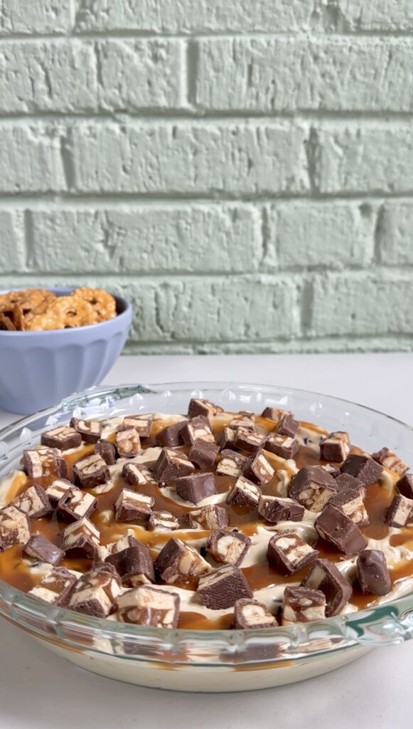 • SERVING BOWL: I like serving this dip in something wide and shallow, like a pie plate, so that there’s more surface area for the caramel dip and extra candy toppings in every bite! If you’d rather serve in a bowl, I recommend adding a layer of caramel dip in the middle as well.